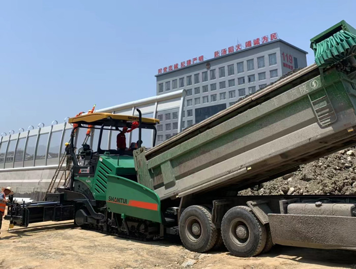 經過多品牌攤鋪效率對比,吳總選定了擁有290馬力的可伸縮的山推C5快速攤鋪機。吳總定車后,山推道機銷售人員只用了3天時間就把嶄新的攤鋪機交付到了嘉興快速路的工地上,每天攤鋪4000噸水穩料。