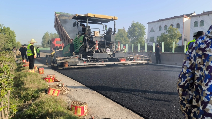 山推SPS90-G攤鋪機支援湖北某國道建設,施工寬度7.5-8.2m,作業厚度50mm,高效智能的獨立電加熱系統,實時溫度顯示,左右恒溫加熱,給客戶帶來了良好的施工質量,得到機手充分肯定。