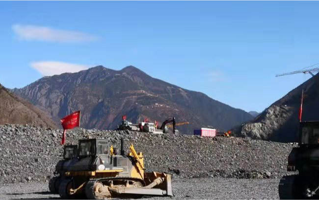 SD32推土機進行西南地區水電站壩體建設,推土機將土、石子等松散物料進行推移堆積,壓路機壓平,澆注混凝土形成壩體。