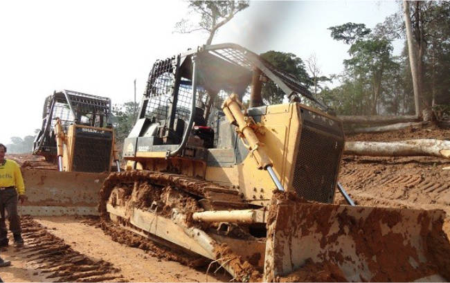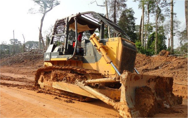 SD22F推土機作業于非洲某森林,承擔道路清障,大型木材托運等工作,SD22F伐木版推土機,增加伐木棚提升安全性,后配置機械絞車,牽引力強勁,讓施工更簡單。