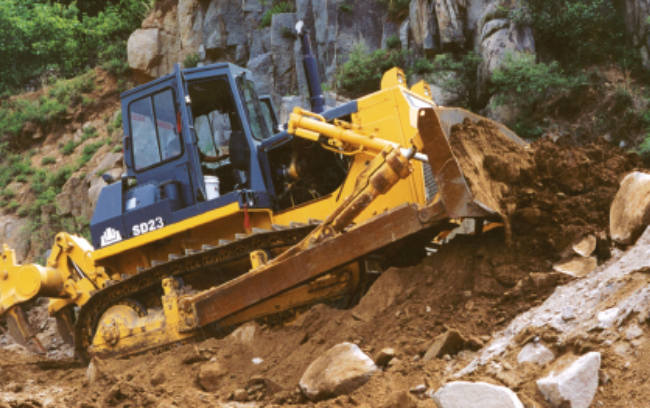 SD23推土機(jī)某山壩征戰(zhàn)作業(yè)。SD23推土機(jī)采用山推自制傳動系統(tǒng)和底盤系統(tǒng),配置重發(fā)/濰柴發(fā)動機(jī),爬坡能力可達(dá)30°。由于超高的出勤率,超低的維護(hù)成本,贏得用戶充分認(rèn)可。
