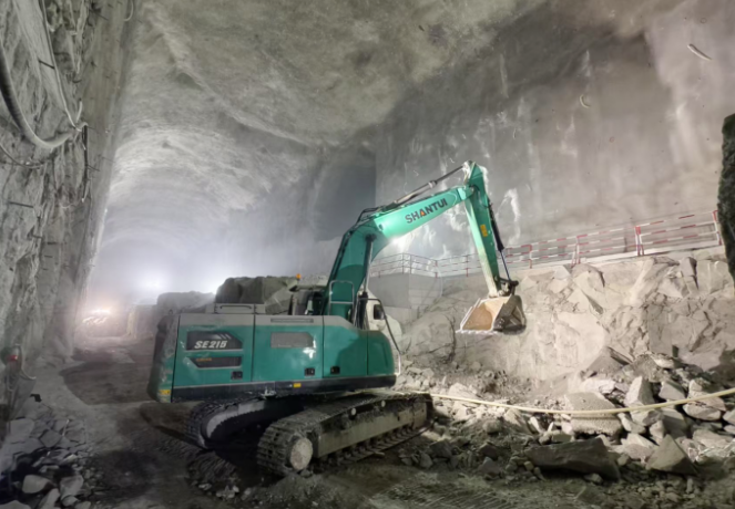 據(jù)介紹,該工程項(xiàng)目位于山東省中部,是國(guó)家規(guī)劃建設(shè)的重大能源基礎(chǔ)設(shè)施項(xiàng)目,總投資逾100億元,需開挖水道系統(tǒng)工程隧道2000米以上,以及引水系統(tǒng)斜井等高難度施工作業(yè),地理環(huán)境多變,特別是隧道內(nèi)施工,面臨著空間狹小、粉塵、潮濕等諸多挑戰(zhàn)?!八淼纼?nèi)施工,對(duì)挖掘機(jī)的通過性、操縱靈活性要求極高,這臺(tái)山推215電動(dòng)挖掘機(jī),日常操作動(dòng)作順暢,連貫性強(qiáng),尤其適合長(zhǎng)時(shí)間高強(qiáng)度作業(yè),幾乎無動(dòng)力衰減,而且不需要更換濾網(wǎng)濾芯,即使環(huán)境惡劣也不怕,用著不僅省錢還省心。”挖掘機(jī)操作手說道。