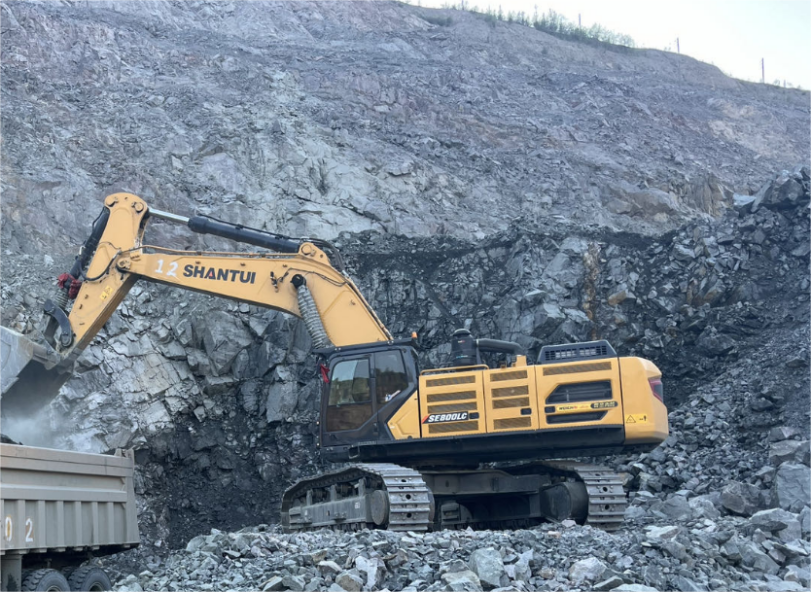 在施工現(xiàn)場,鐵礦石的開采與裝載工作正有序推進(jìn)。面對礦區(qū)日均超20小時(shí)的高強(qiáng)度作業(yè)需求,項(xiàng)目方采購了5臺山推SE800LC礦用挖掘機(jī),并加裝5方巖石鏟斗,以確保裝載效率。同時(shí),為滿足品位不達(dá)標(biāo)礦石的排巖作業(yè),施工團(tuán)隊(duì)配備了60噸級挖掘機(jī),以保障整個(gè)施工流程的順暢推進(jìn)。